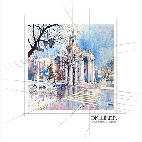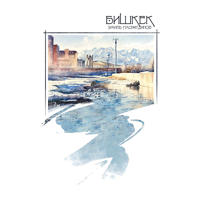 Автор живет в 9-м микрорайоне рядом с рекой Ала-Арча. Вода и прекрасные виды открывающиеся на горы делают ее прекрасным сюжетом для акварелей. Река особенно красива зимой.