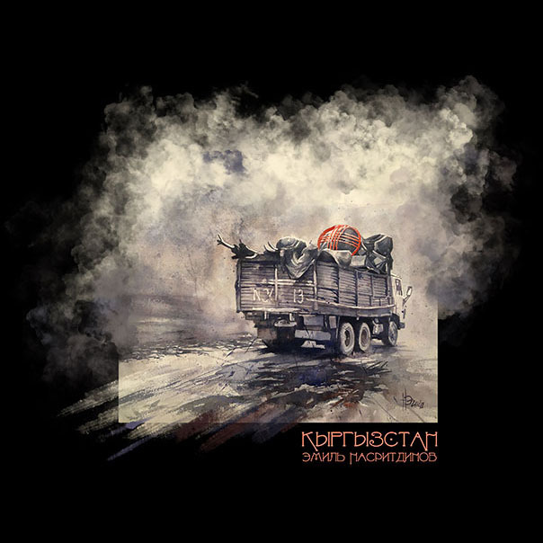 This watercolor is based on a photo by the talented Bulgarian traveler and photographer Yuri Boyanin. It shows a misty morning in the mountains and a truck with the belongings of a family pumping to summer pastures - zhailoo. On top of all the belongings lies a red tunduk - the central element of the yurt's dome.